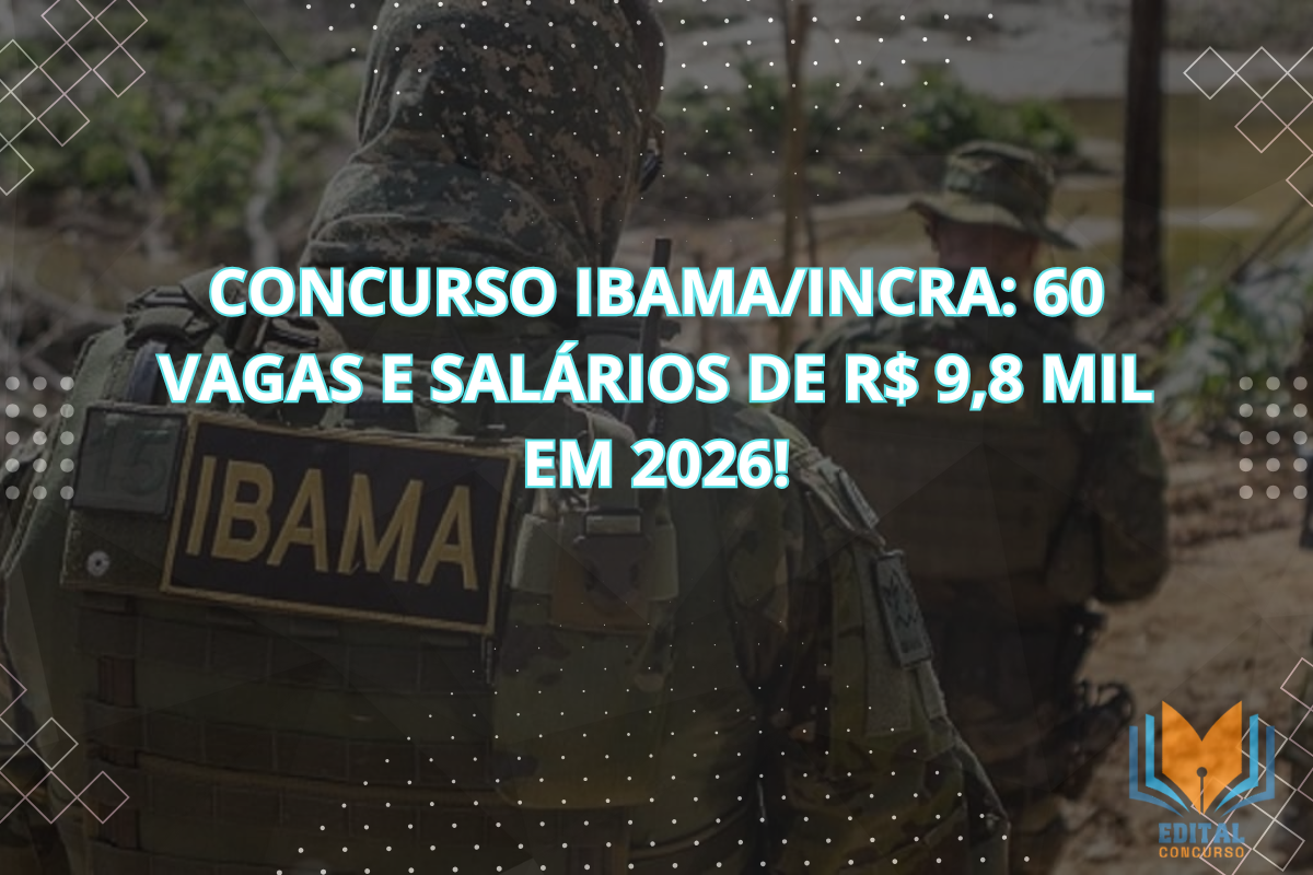 Uma grande oportunidade para você, concurseiro! O Instituto Brasileiro do Meio Ambiente e dos Recursos Naturais Renováveis (IBAMA) e o Instituto Nacional de Colonização e Reforma Agrária (INCRA) acabam de lançar um novo processo seletivo temporário. Este concurso oferece 60 vagas de nível superior com salários que podem alcançar até R$ 9,8 mil. As inscrições começam em breve! Prepare-se e não perca esta chance.